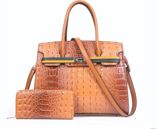 Ostrich Satchel Bag & Wallet Set